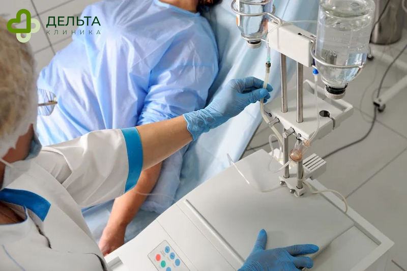 Врач проводит детоксикацию пациенту